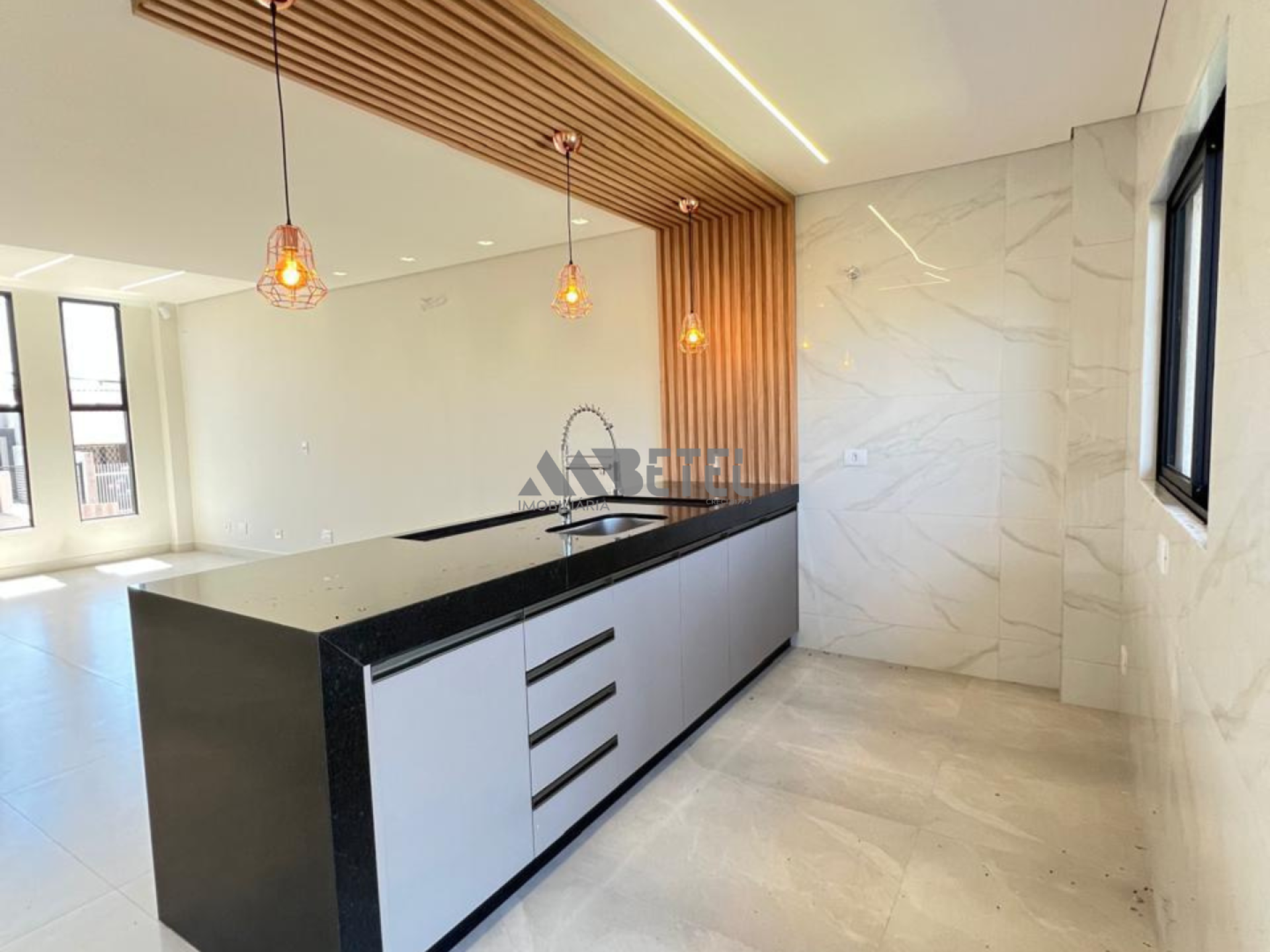 • Sala e cozinha amplas, integradas por uma bancada planejada moderna e
